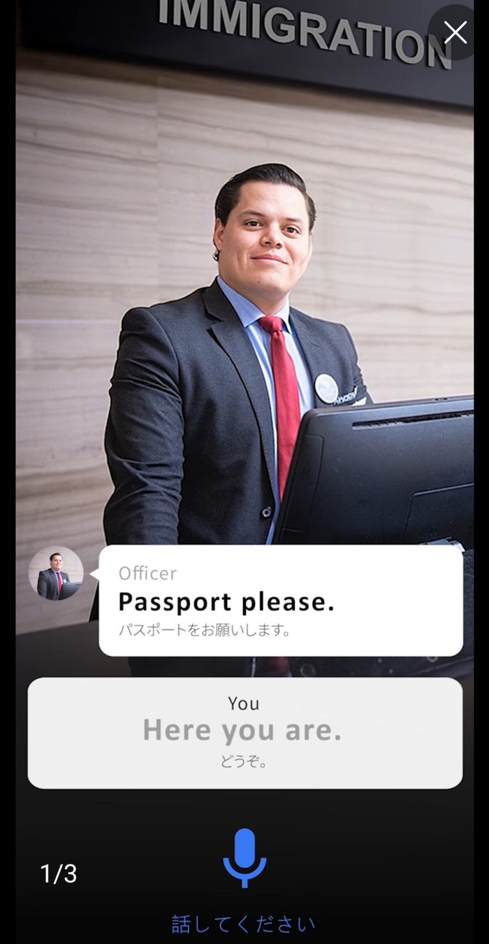まるで現地で旅行をしているかのような臨場感を味わいながら、AIと英会話の練習ができる無料の自習コンテンツです。様々なシチュエーションに応じた会話をシミュレーションでき、実践的なスキルを養うことができます。お手持ちのスマートフォンで、疑似体験としての旅行英会話をお楽しみください!