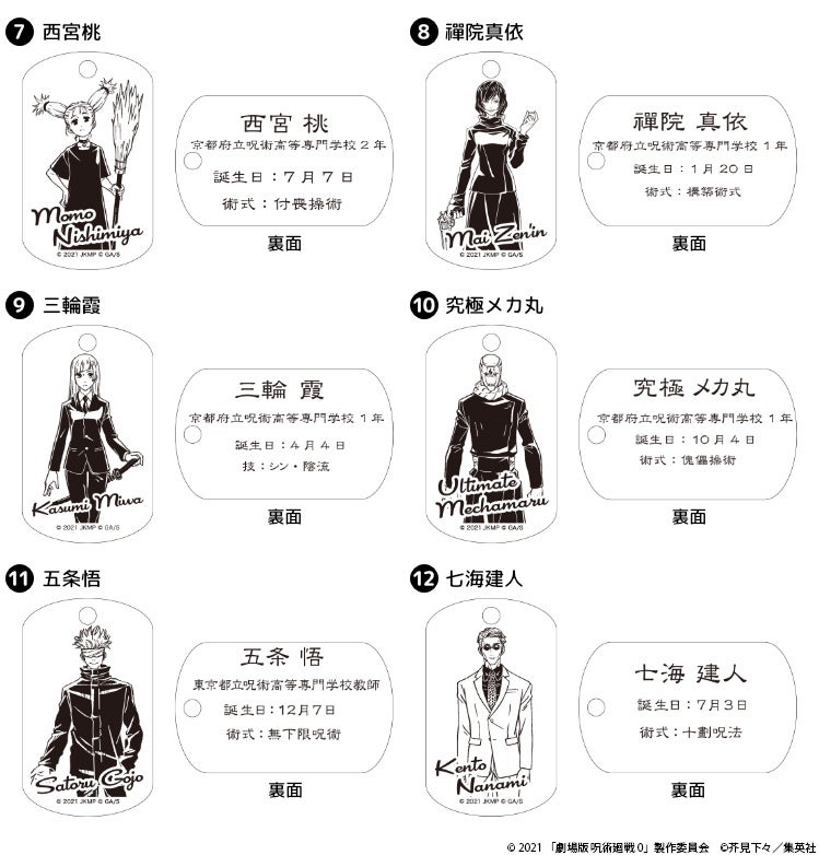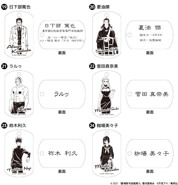 『劇場版 呪術廻戦 0』のキャラクタービジュアルを使用した、アクセサリー感覚で持ち歩けるプレミアムドッグタグが登場