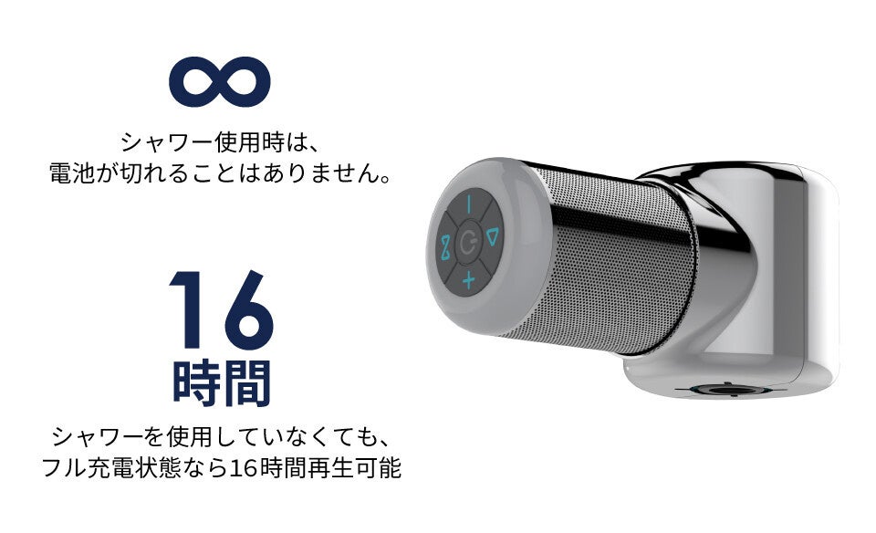 シャワー不使用時のバッテリー駆動時間:最長約16時間(フル充電状態の場合)