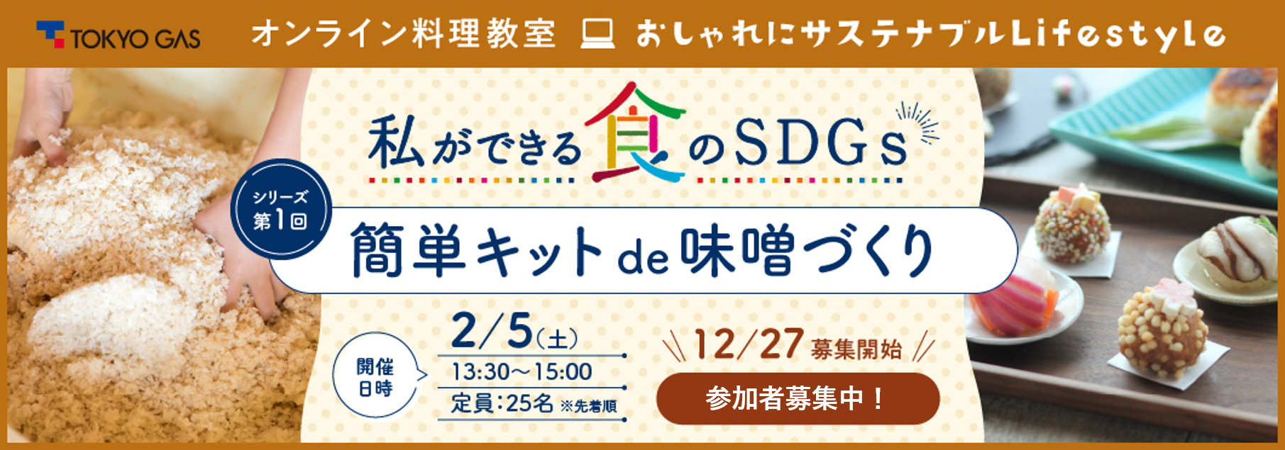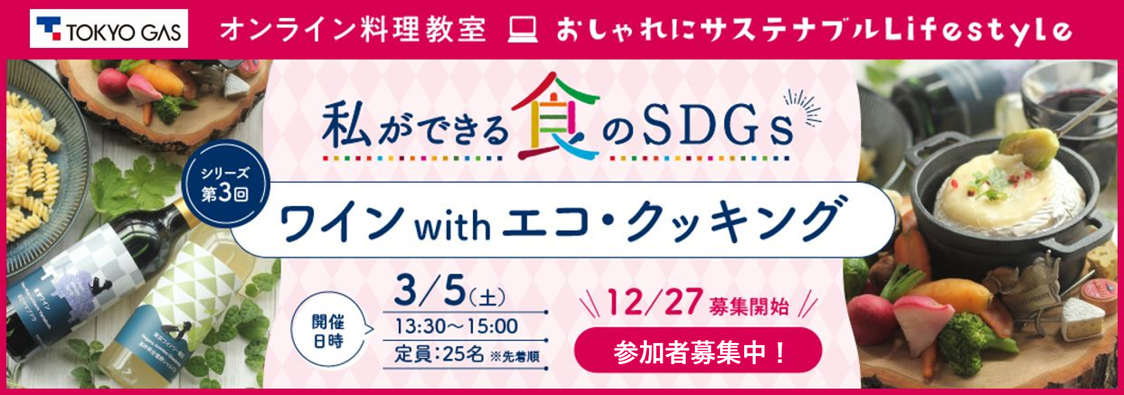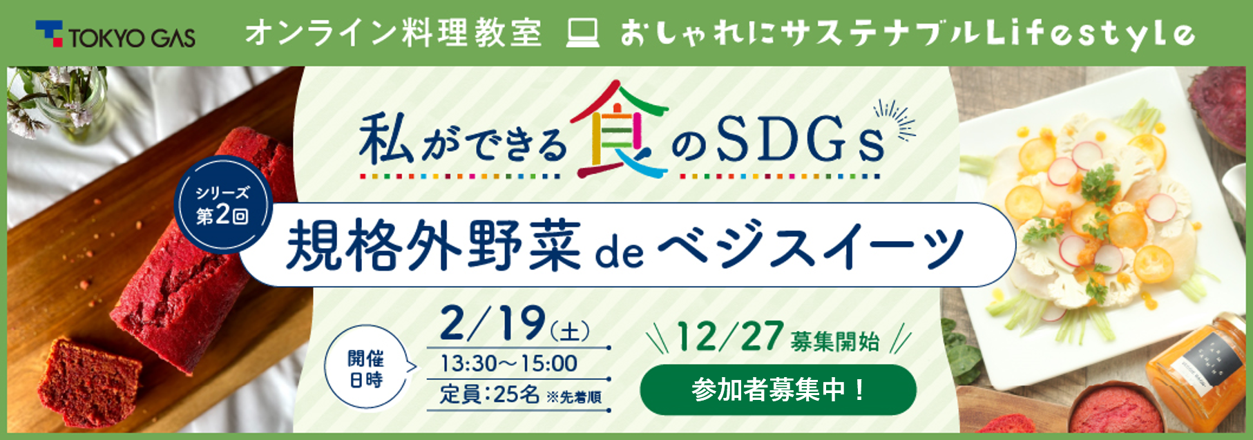 東京ガスは2月より、SDGsをテーマにしたオンライン料理教室を全3回開催します。