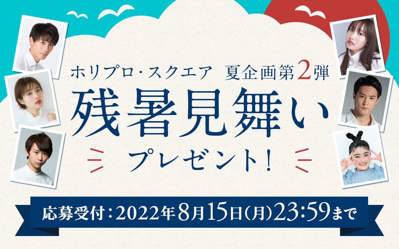 「ホリプロ・スクエア」内特設ページより、応募してくださった方の中から抽選で、各タレントにつき 1 名様に、タレント直筆の残暑お見舞いはがきをプレゼント!
