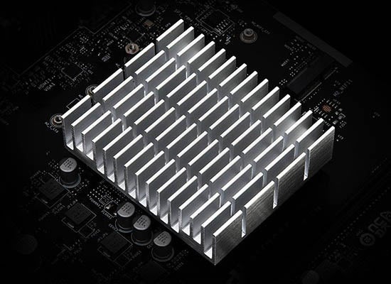 CPUはヒートシンクによるファンレス冷却で、静音かつ省スペース。
