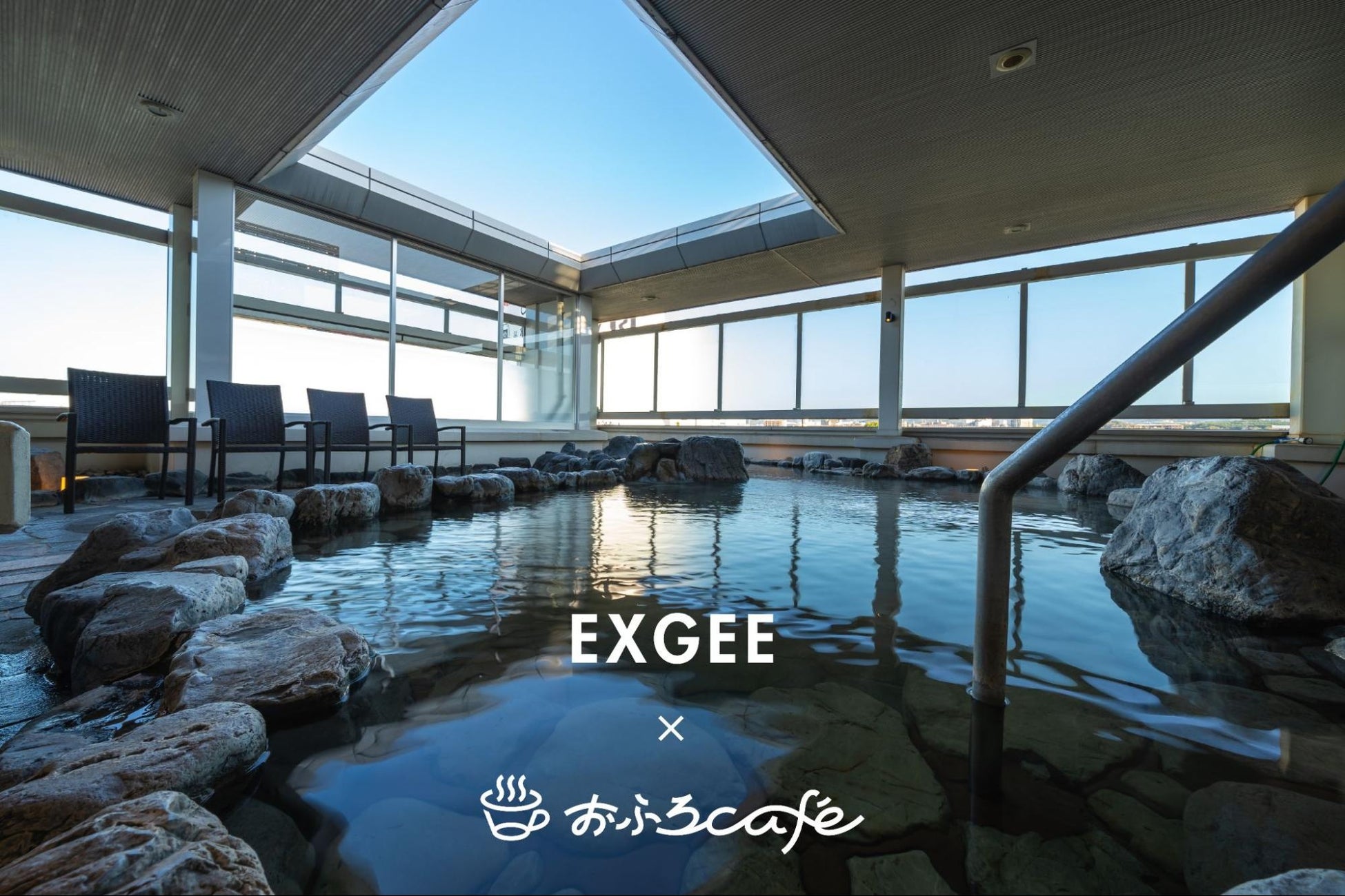 プロモーション期間中、おふろcafe のコラボ実施店舗の男⼥浴室にて、EXGEEのアイテムをご使⽤いただけます。