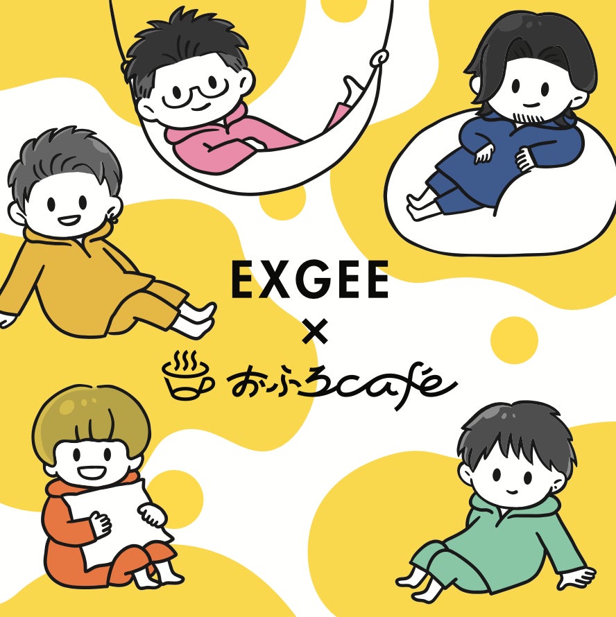 期間中施設内には、撮り下ろしの「EXGEE」キーヴィジュアルポスターを掲示、「EXGEE」商品を実際に店舗でもご購⼊いただけます。「EXGEE」商品をご購⼊されたお客さまには、「EXGEE」× おふろcafeコラボオリジナルコースターを先着でプレゼントさせていただきます。