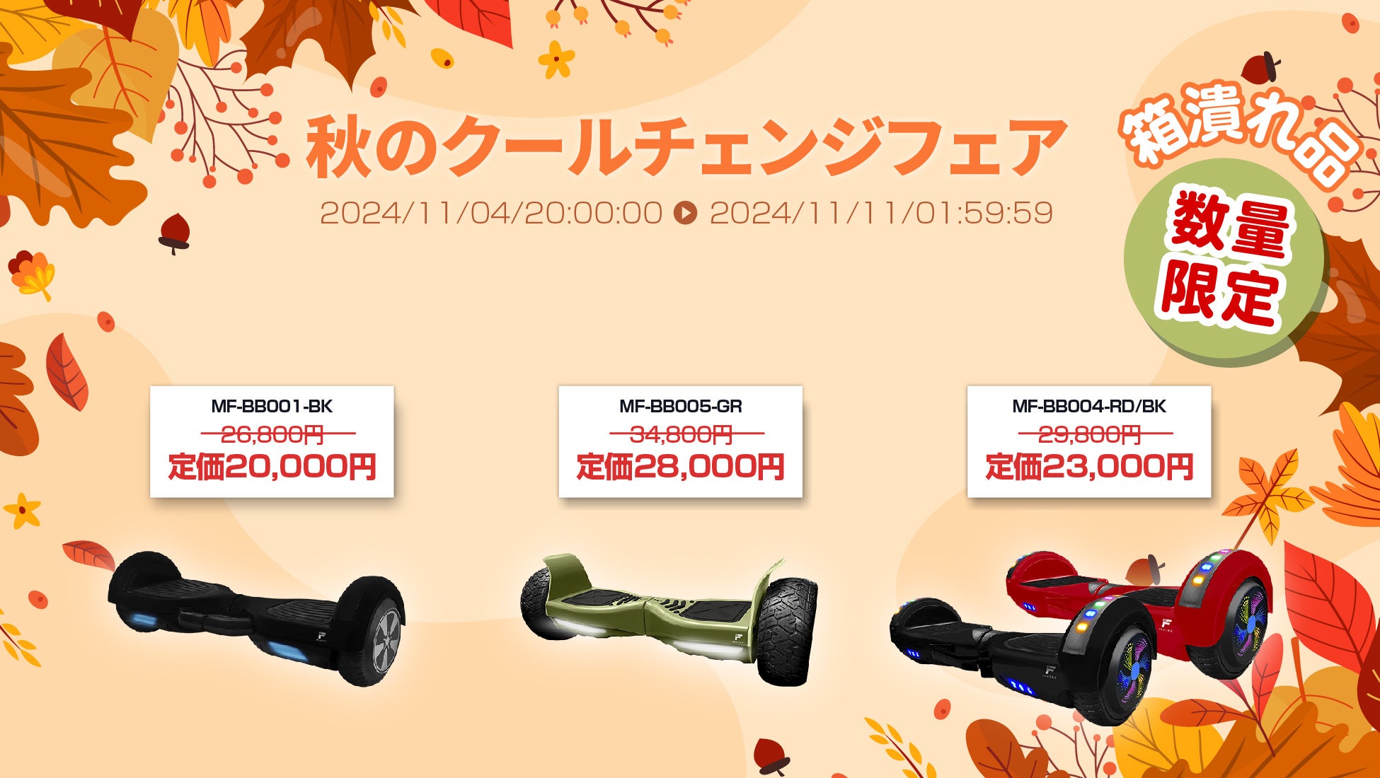 楽天市場「Show!t」では、11月4日(月)20:00~11月11日(月)01:59の楽天お買い物マラソンに参加。期間限定で、MEISTER.Fの電動バランスボード(箱潰れ品)を特別価格でご提供します。外箱潰れはありますが中身は新品です。秋の澄んだ空気の中、ご家族で、キャンプ地などで楽しみながら体験してみてはいかがでしょうか。
