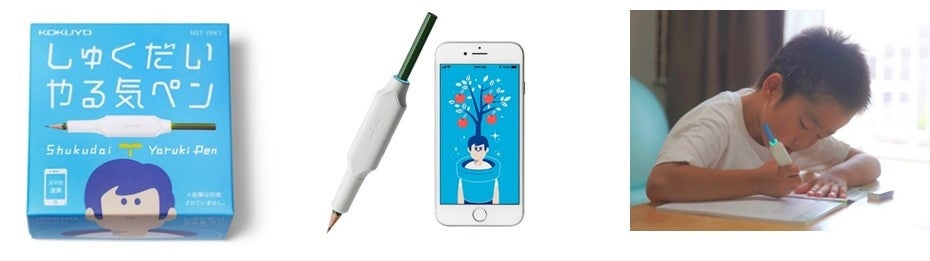 コクヨのIoT文具「しゅくだいやる気ペン」は、スマートフォンのアプリと連動して、子どもの日々の努力を「見える化」することで、学習への意欲を高めていくために開発された商品です。センサー付きアタッチメントを鉛筆に取り付け、勉強への取り組みに応じて溜まった「やる気パワー」をスマホアプリに取り込んで見える化します。「かく⇔ほめる」の好循環を生み出すことで、親子のコミュニケーションを円滑にし、子どもが自発的に学習する習慣を促していきます。発売以来、84%のユーザー親子が効果を実感しています(※)。2020年「第14回キッズデザイン賞」(子どもたちの創造性と未来を拓くデザイン部門)を受賞しました。