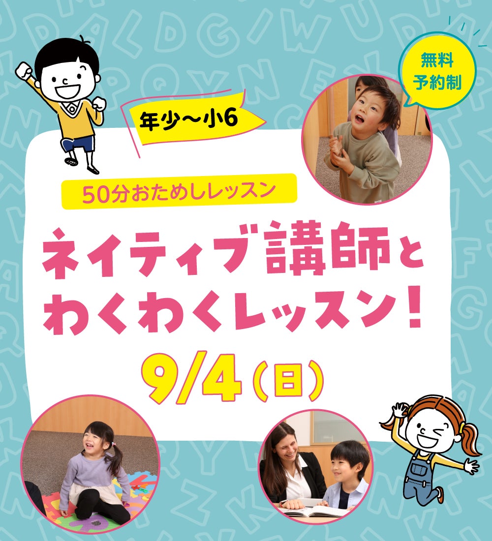 【シェーン英会話】9/4開催!年少~小学生向け無料おためしレッスン申込受付中