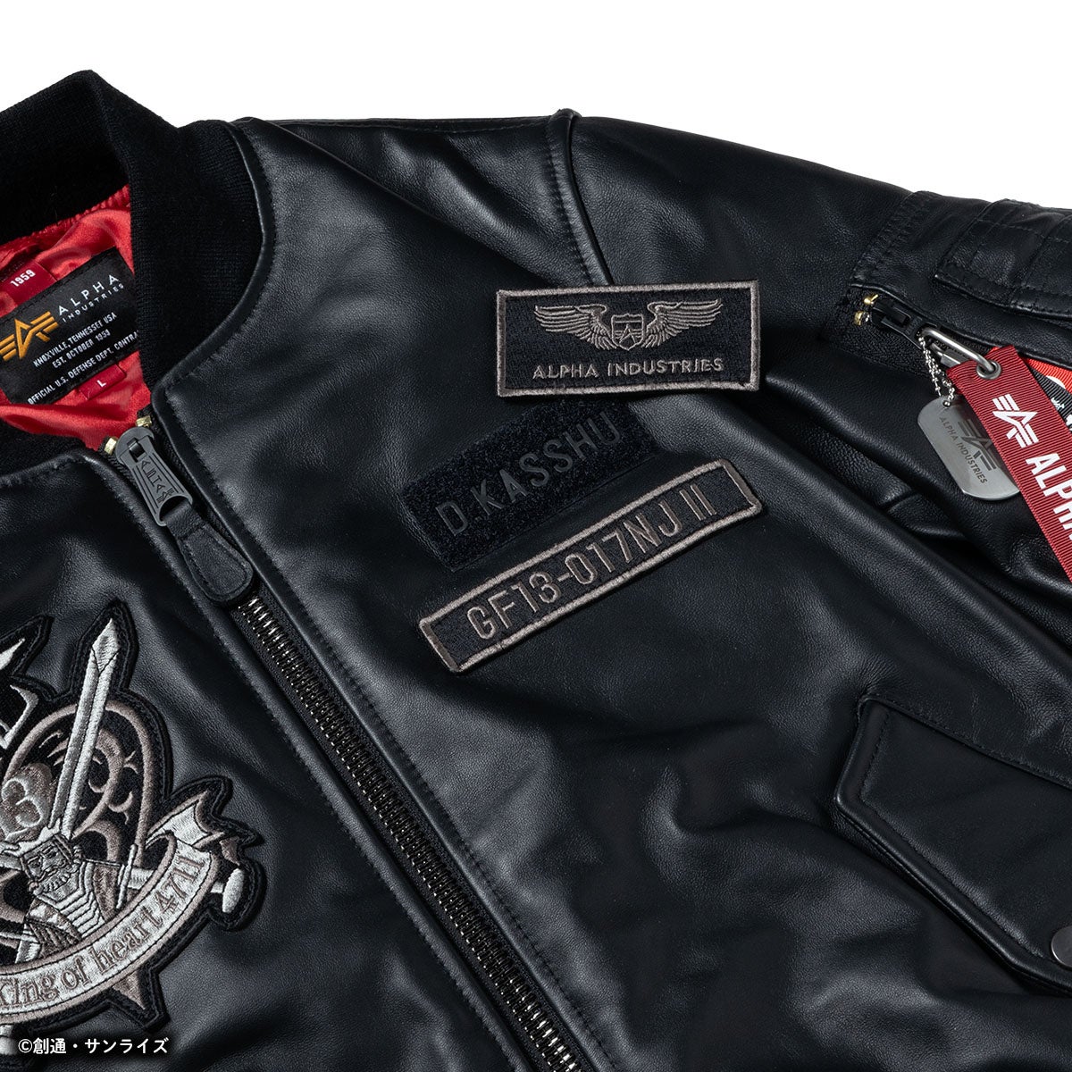 2022年に展開した『機動武闘伝Gガンダム』ドモン・カッシュモデルをベースに30周年を記念して、上質な羊革を使用し柔らかい風合いに仕上げました。パッチは生地色に合わせモノトーン仕様に変更し、リボンと一緒につけられた『機動武闘伝Gガンダム』30周年ロゴ、ALPHA INDUSTRIESのブランドのネームが入ったドッグタッグは本モデルのみの特別仕様です。