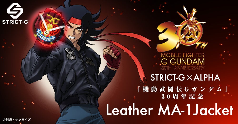 株式会社バンダイ ライフスタイル事業部では、ガンダムの世界観を取り入れたアパレルショップ「STRICT-G」にて、2024年12月26日(木)より、『機動武闘伝Gガンダム』の30周年を記念して、ミリタリーファッションブランド “ALPHA INDUSTRIES(アルファ インダストリーズ)” とのコラボによる新作フライジャケット(レザー仕様)のMA-1をSTRICT-G 各店舗にて販売いたします。また、店頭販売に先駆け、バンダイナムコグループ公式通販サイト「プレミアムバンダイ」( https://p-bandai.jp/ )では、2024 年12月25日(水)13時より予約販売を開始いたします。