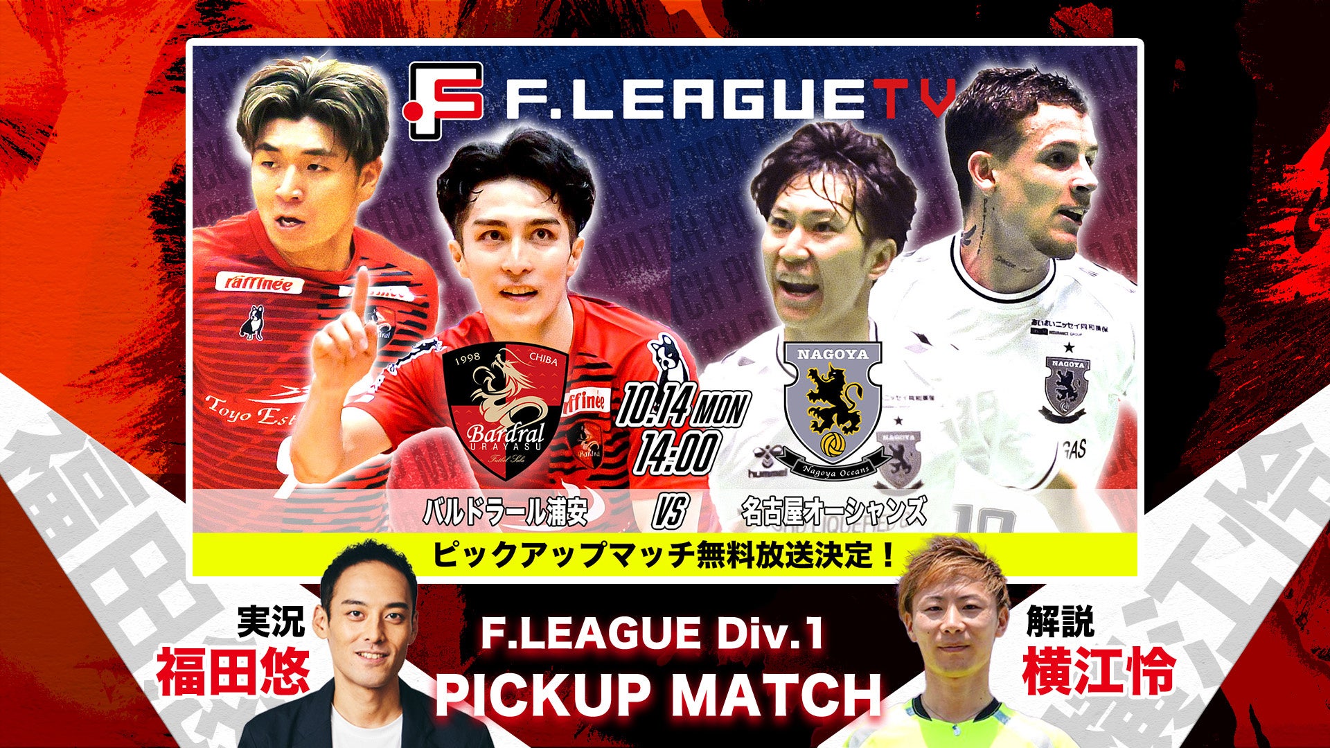 10月14日(月)FリーグTVにて、Fリーグ2024-2025 ディビジョン1 第10節「バルドラール浦安 vs 名古屋オーシャンズ」の無料放送が決定しましたのでお知らせいたします。