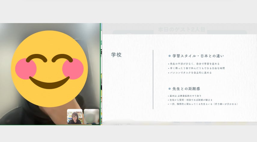 不登校を経験した高校生が、留学を決めたきっかけや、それを通して学んだ「自分らしい学びの形」が赤裸々に語られ、不登校だったからこそ、家族以外と過ごす時間がとても貴重だった、他の人との関わりが刺激的だったというお話がありました。