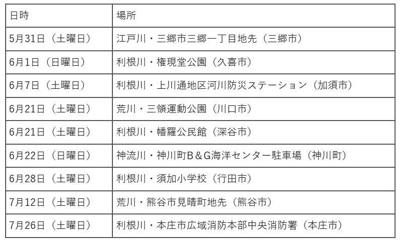 また、県では新たに洪水の発生を予測して「洪水予報」を発表する取り組みを始めています。この取り組みは、今年の3月25日から、県南東部を流れる中川、元荒川、新方川、大落古利根川の4河川で、また明後日5月29日から、新たに県西部を流れる入間川で実施されます。県民の皆様には、より早い避難行動へと役立ててください。