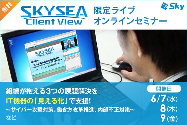 【6月開催オンラインセミナー】サイバー攻撃対策・内部不正対策・働き方改革推進を“IT機器の見える化”でまとめてサポート!<SKYSEA Client View>