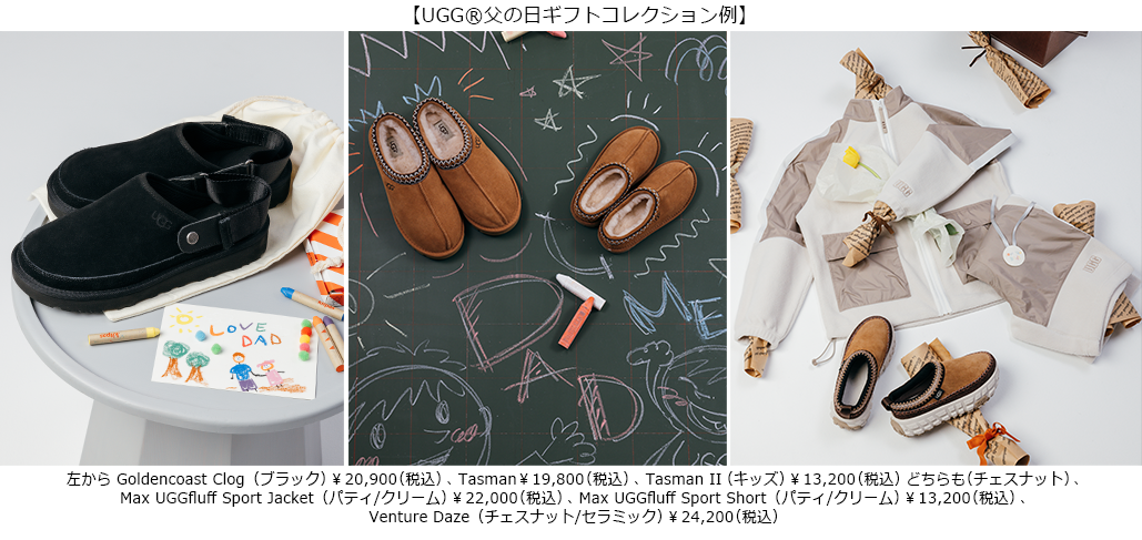 Tokyo (2024年5月29日) –南カリフォルニアを拠点とするグローバルライフスタイルブランドのUGG (a division of Deckers Brands [NYSE: DECK])は、父の日にオススメのUGG2024春夏のギフトコレクションを発表します。UGGで人気の定番スリッポンやクロッグサンダル、家族でリンクコーデができるシューズから着心地の良いアパレルセットまで、ビジネスカジュアルからリラックススタイルにも合う、もらって嬉しいアイテムが沢山!