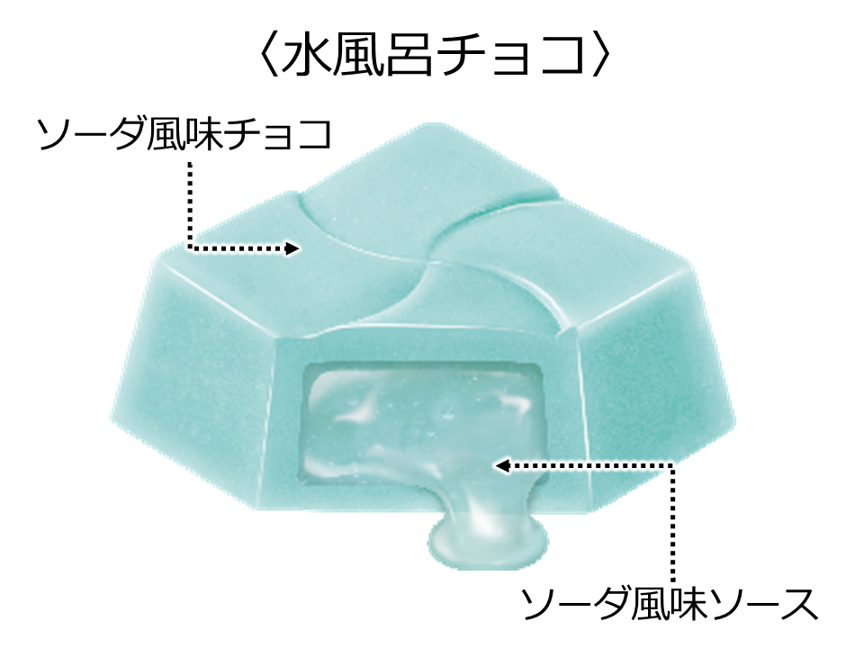 ソーダ風味のさっぱりとしたチョコでソースを包みました。水風呂のひんやり感を楽しめます。