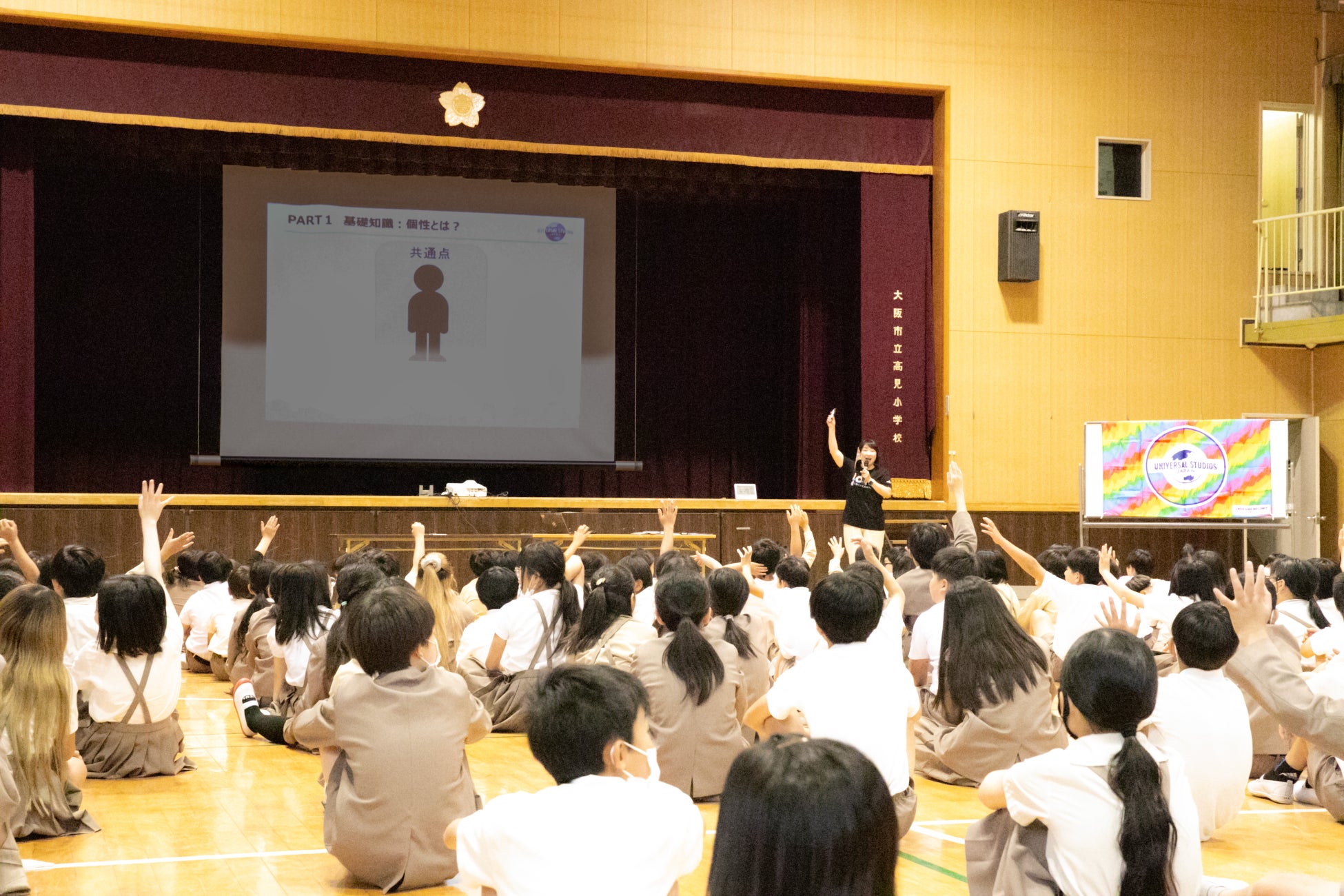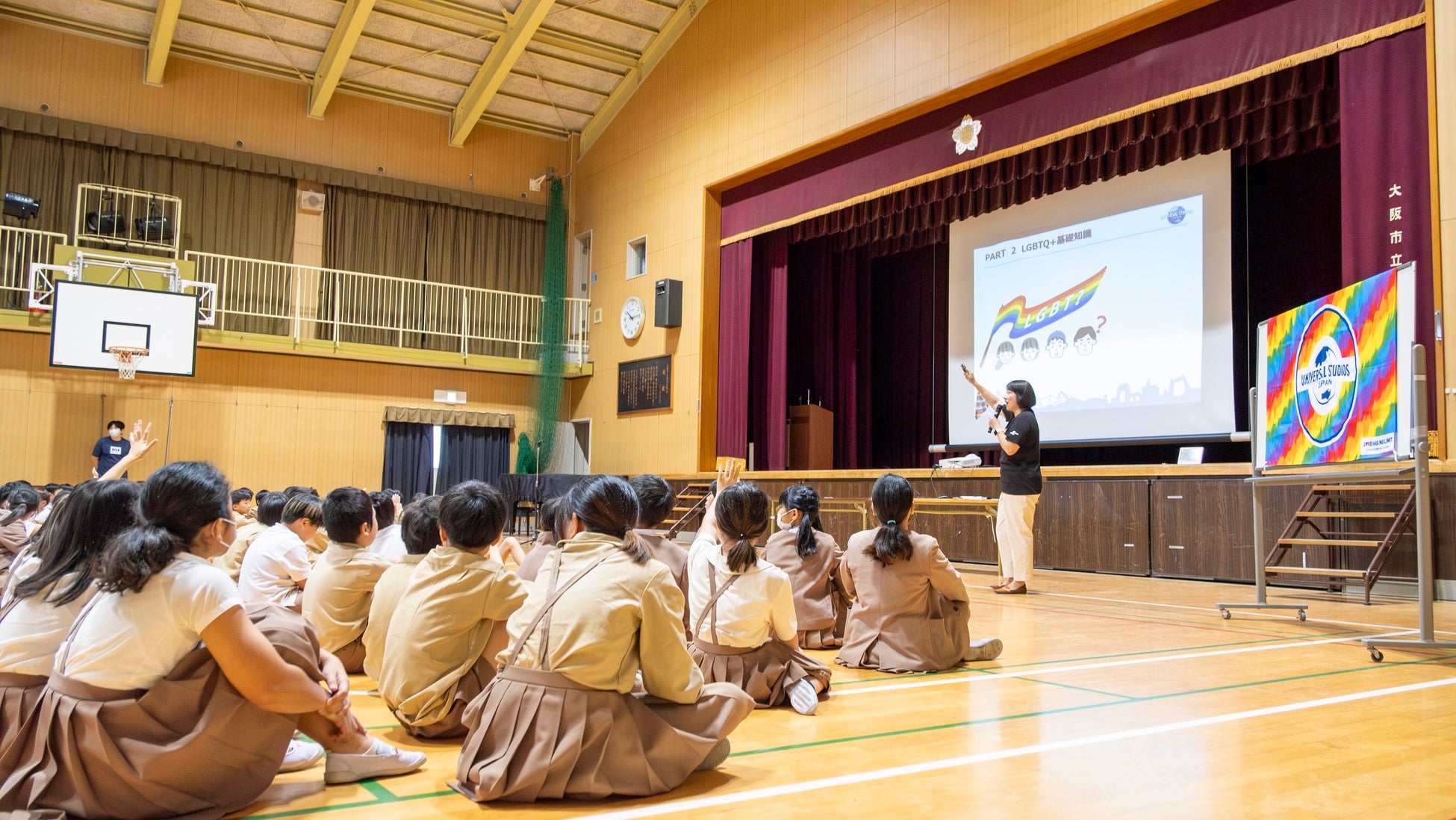 この度、10月22日(火)に合同会社ユー・エス・ジェイのある大阪市此花区の大阪市立高見小学校にて、「人権学習」の時間でLGBTQ+やDE&I(ダイバーシティ・エクイティ&インクルージョン)について理解を深める出張授業を開催しました。出張授業には4年生から6年生の児童214名が参加し、授業中は様々な質問や意見が飛び交いました。