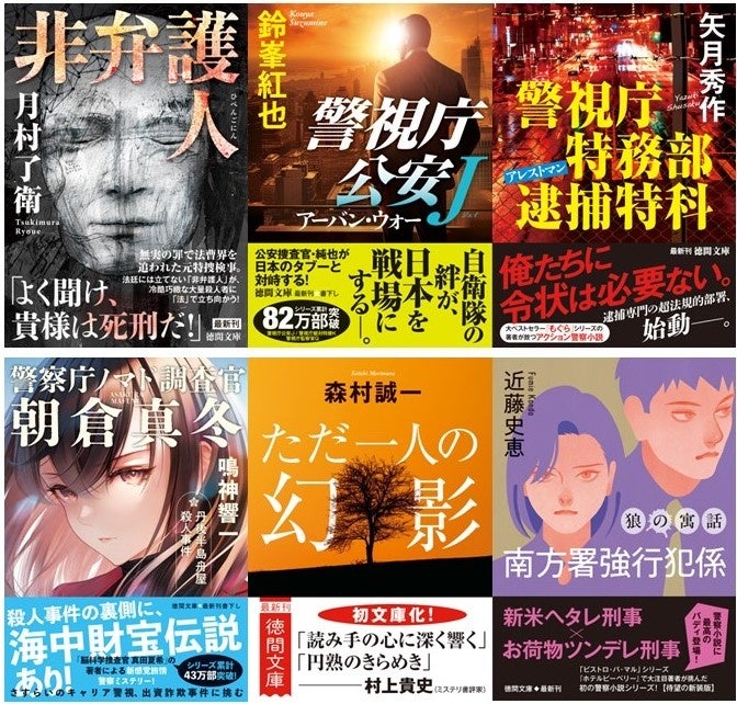 数々の文学賞を受賞した気鋭・月村了衛氏のリーガル・サスペンス『非弁護人』、昨夏の逝去が惜しまれる巨匠・森村誠一氏の『ただ一人の幻影』、警察小説シリーズの人気を牽引する鈴峯紅也氏の『警視庁公安J アーバン・ウォー』など、現代ミステリーの傑作をお届けします。
