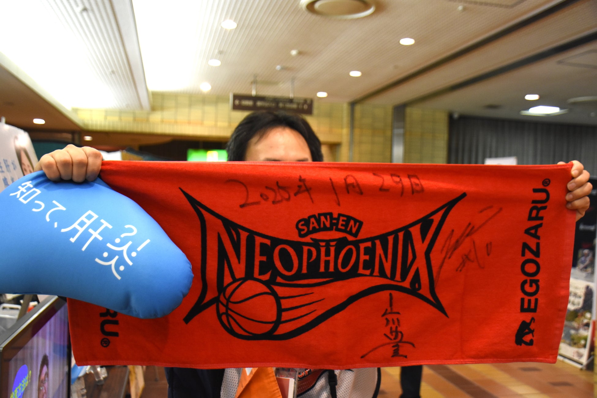 アンケート回答者へ山川さん&吉井選手サイン入りタオルが贈られる