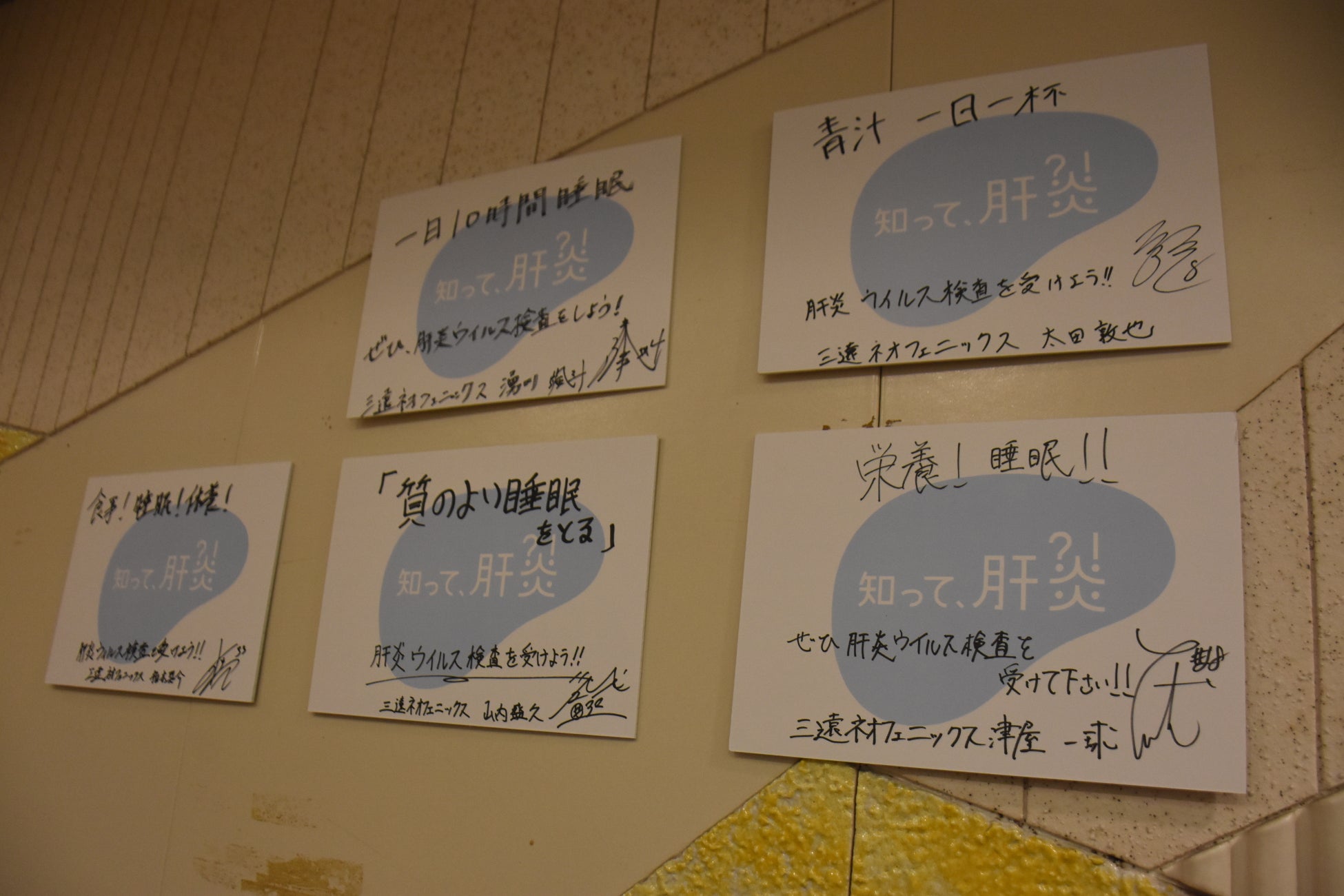 三遠の選手たちも世界・日本肝炎デー(7月28日)に合わせてSNSにメッセージを投稿し、肝炎ウイルス検査の受検促進に協力してきました。今回は老若男女が集まる試合会場で、観戦を楽しみながら肝炎についても学んでもらおうと、「知って、肝炎プロジェクト」と豊橋市がコラボ企画を実施しました。
