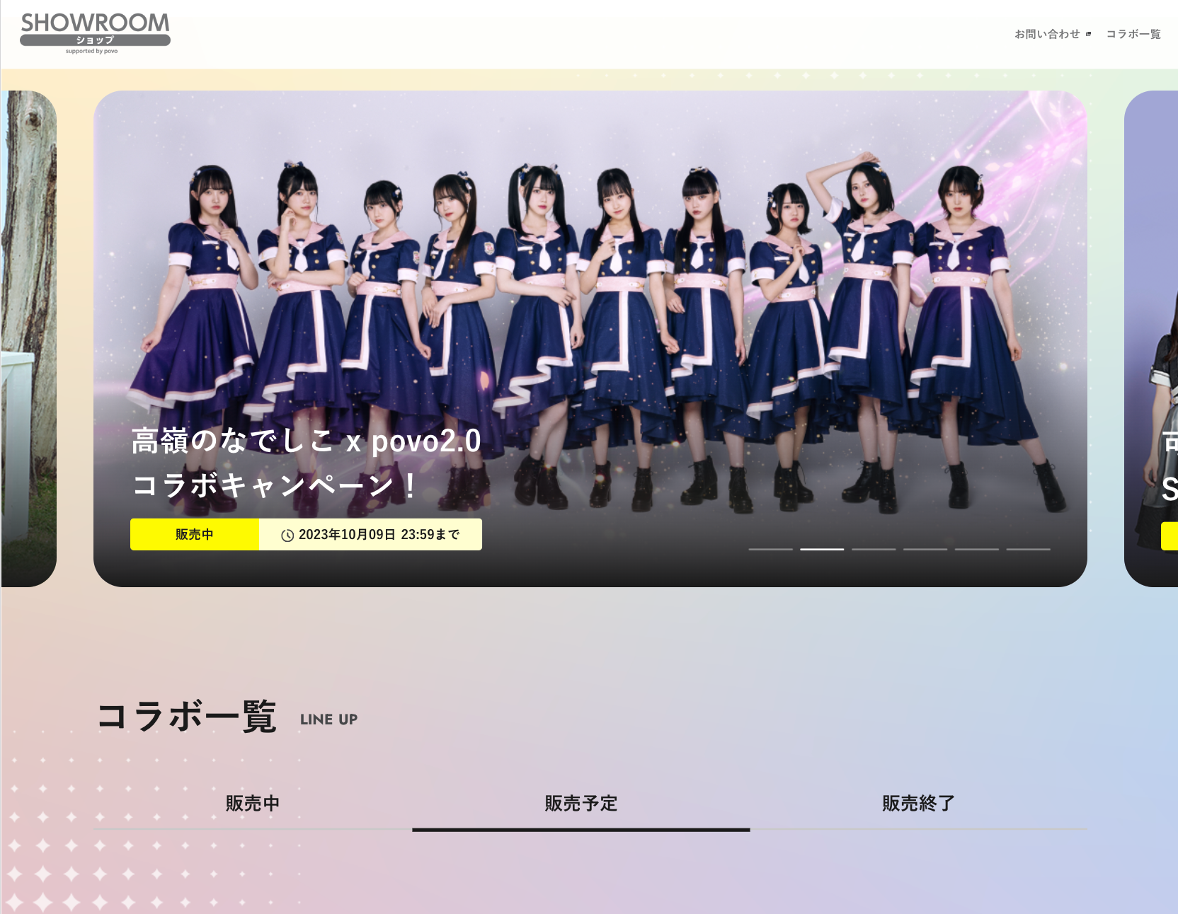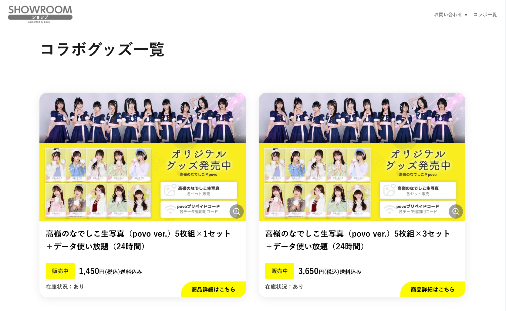 ▼『SHOWROOMショップ supported by povo』(コラボグッズ一覧画面)