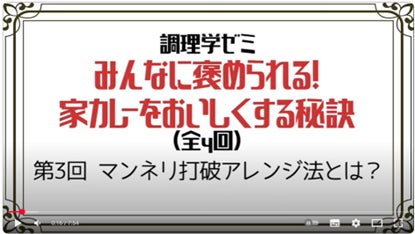 テレビでお馴染みのカレー専門のコンサルティング会社である株式会社カレー総合研究所(所長:井上岳久/東京都渋谷区)は、傘下のカレーのプロフェッショナル育成機関「カレー大學」の学長、井上岳久がYouTubeチャンネル「カレー大學学長ゼミ」で、「調理学ゼミ/みんなに褒められる!家カレーを簡単においしくする秘訣」の4部作が完結しました。個別相談会を開催します