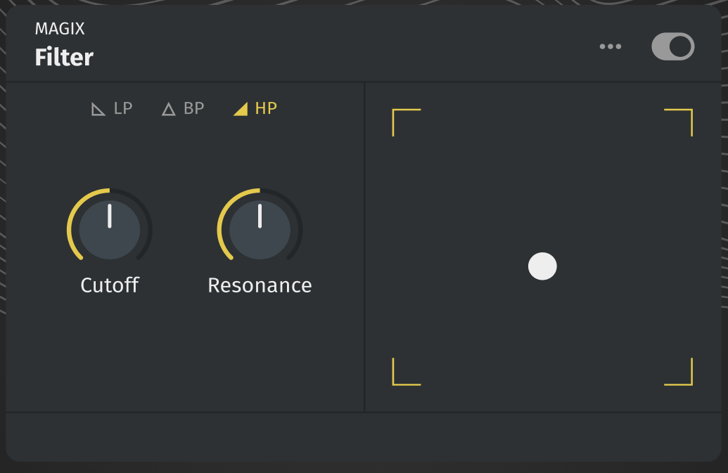 新しいマルチモードフィルターを使用して、数秒でミックスにローパス、ハイパス、またはバンドパスフィルタリングをかけられます。