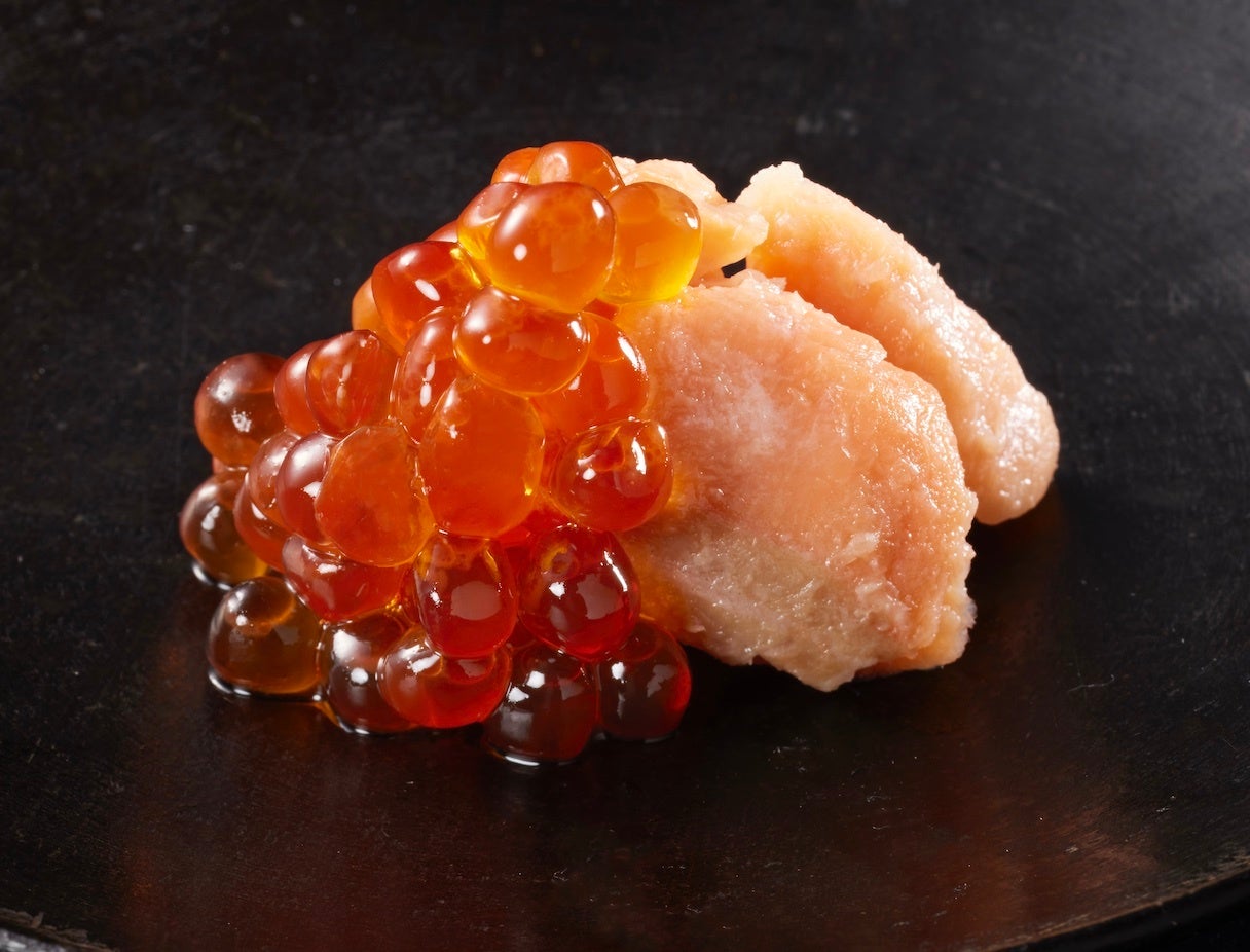 【内容】東北地方の郷土料理であるはらこめしをおむすびに仕立てました。超特選醤油で味付けしたいくら醤油漬けと北海道産の秋鮭を具材に使用しています。ごはんと鮭を一緒に炊込むことで、鮭の風味がより感じられます。