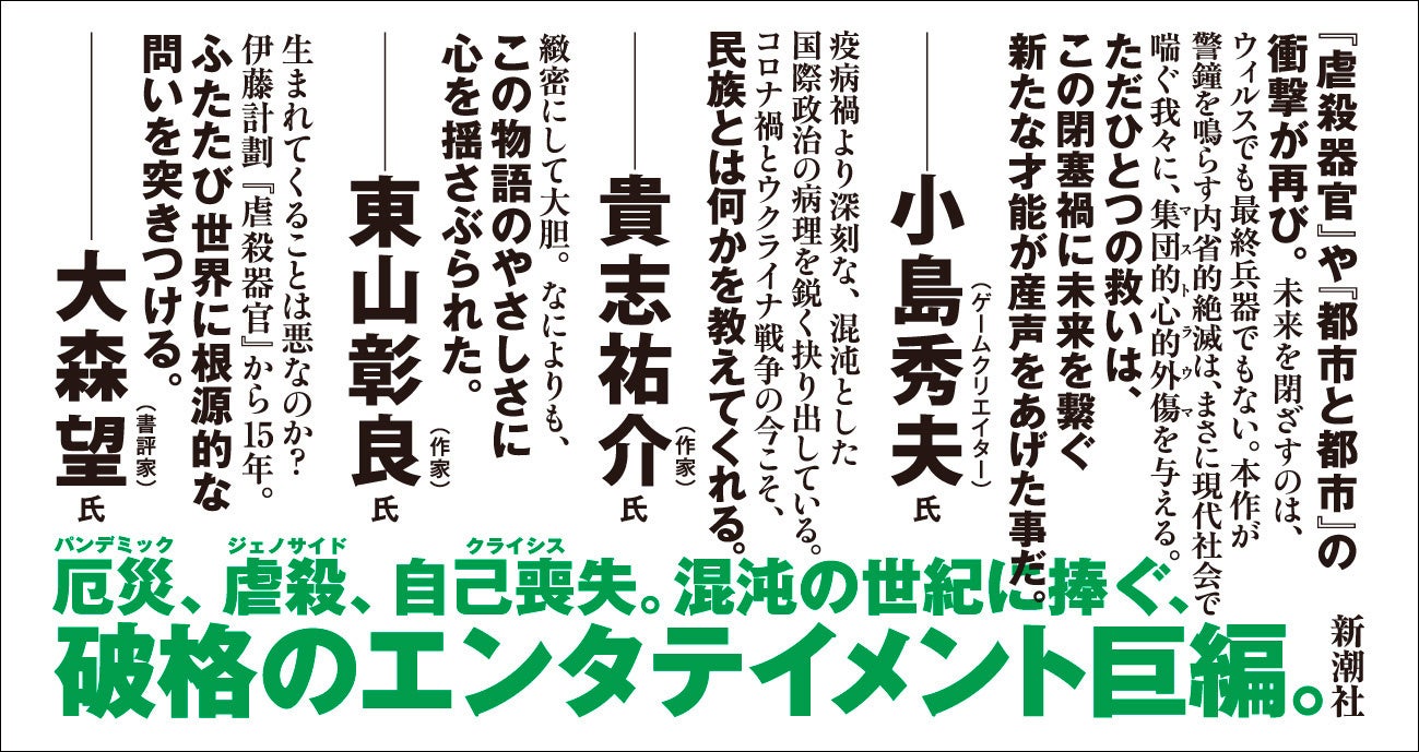 災厄、虐殺、自己喪失。混沌を生きる現代に捧ぐ、近未来諜報小説の新たな地平。今年のエンタメ界「台風の目」となる規格外の一作が誕生しました。