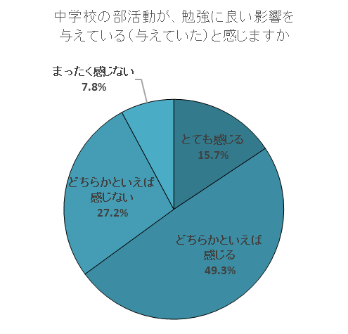 勉強との両立面でデメリットを感じている保護者がいる一方、部活動に対して前向きな印象を持っている保護者も少なくないことが明らかとなった。