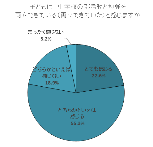 - 保護者の8割が「子どもが部活動と勉強の両立ができている」と評価