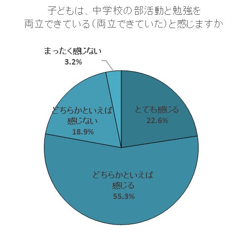 約8割の保護者が、子どもが中学校の部活動と勉強を両立できていると感じており、子どもの頑張りを評価していることが分かった。