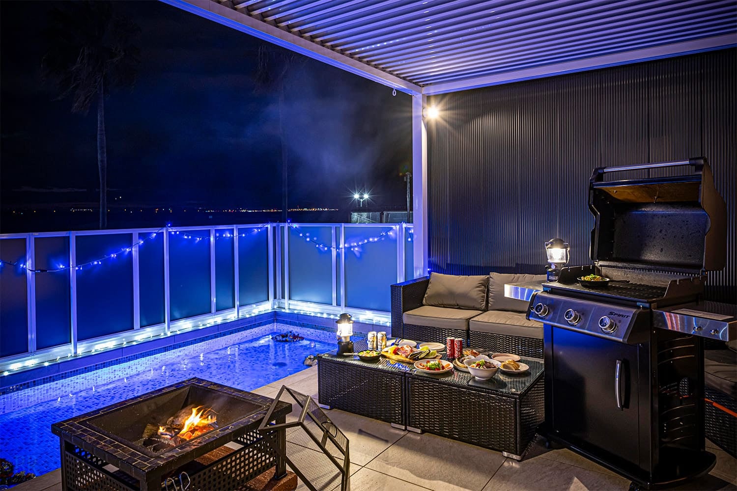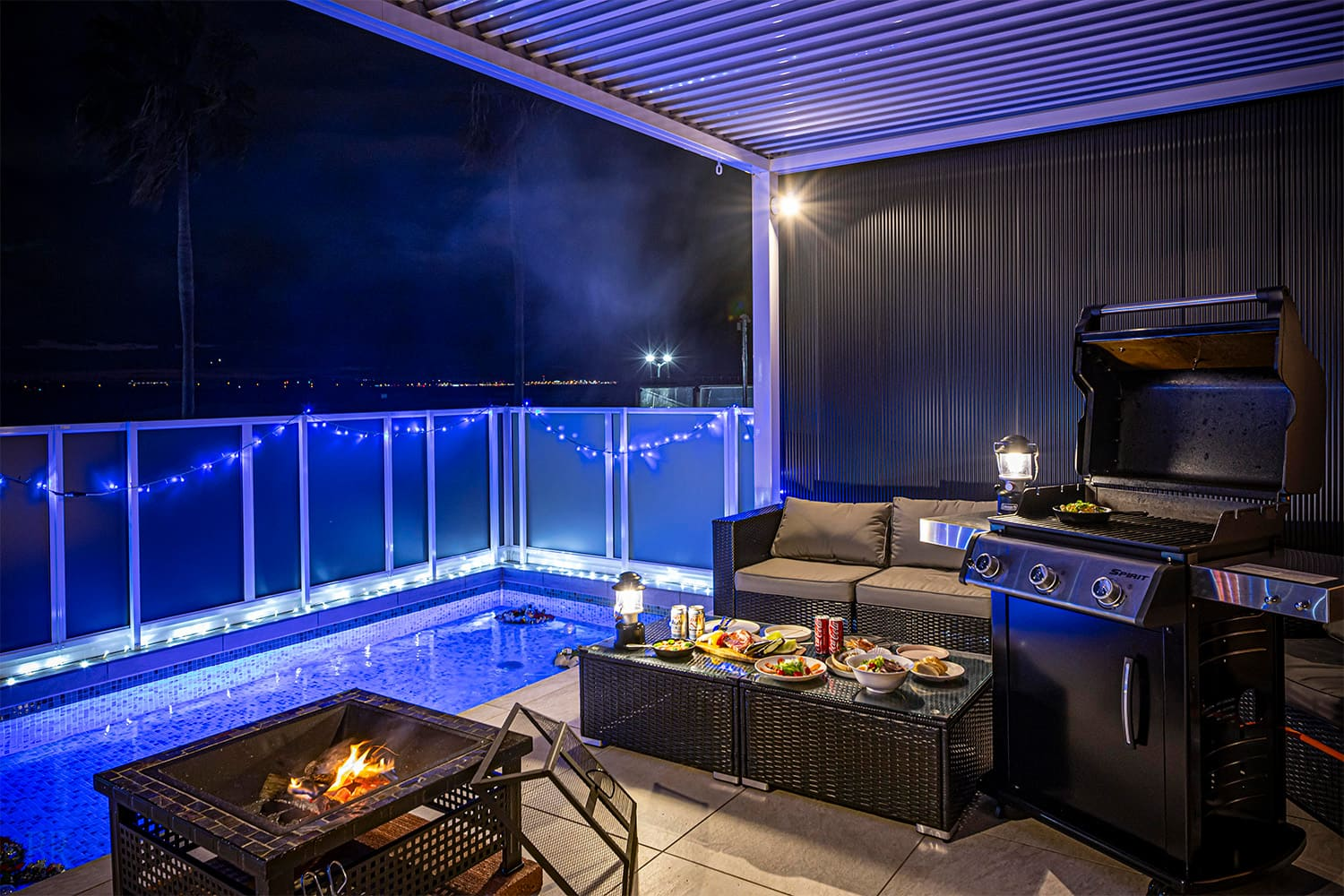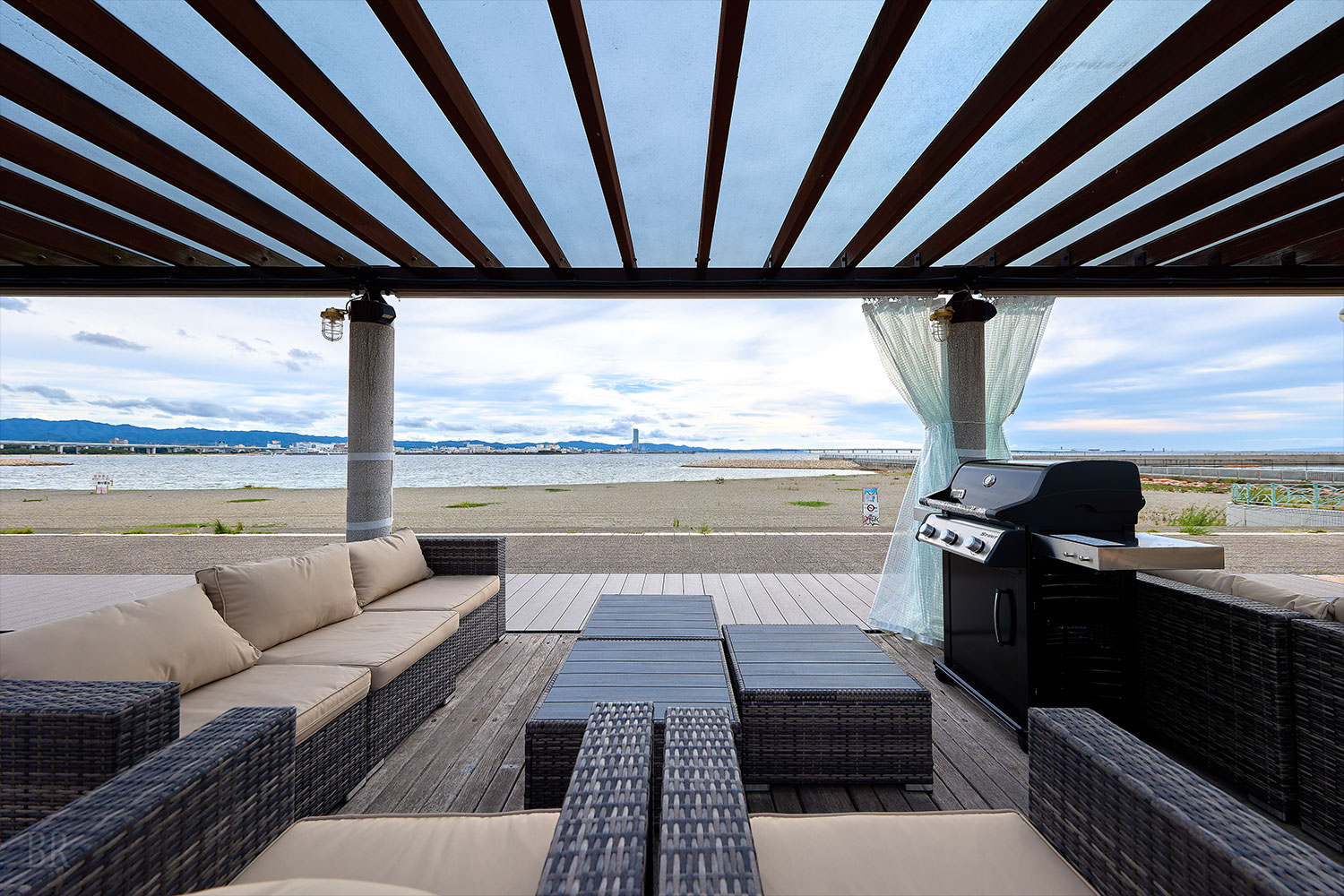 海を望むロケーションに位置する「アッパーBBQガーデン」では、日帰りBBQをお楽しみいただけます。屋根付きのBBQスペースには、ゆったりと寛げるソファ席を配置。目の前に広がるオーシャンビューを眺めながら、プライベート感のある時間をお過ごしいただけます。