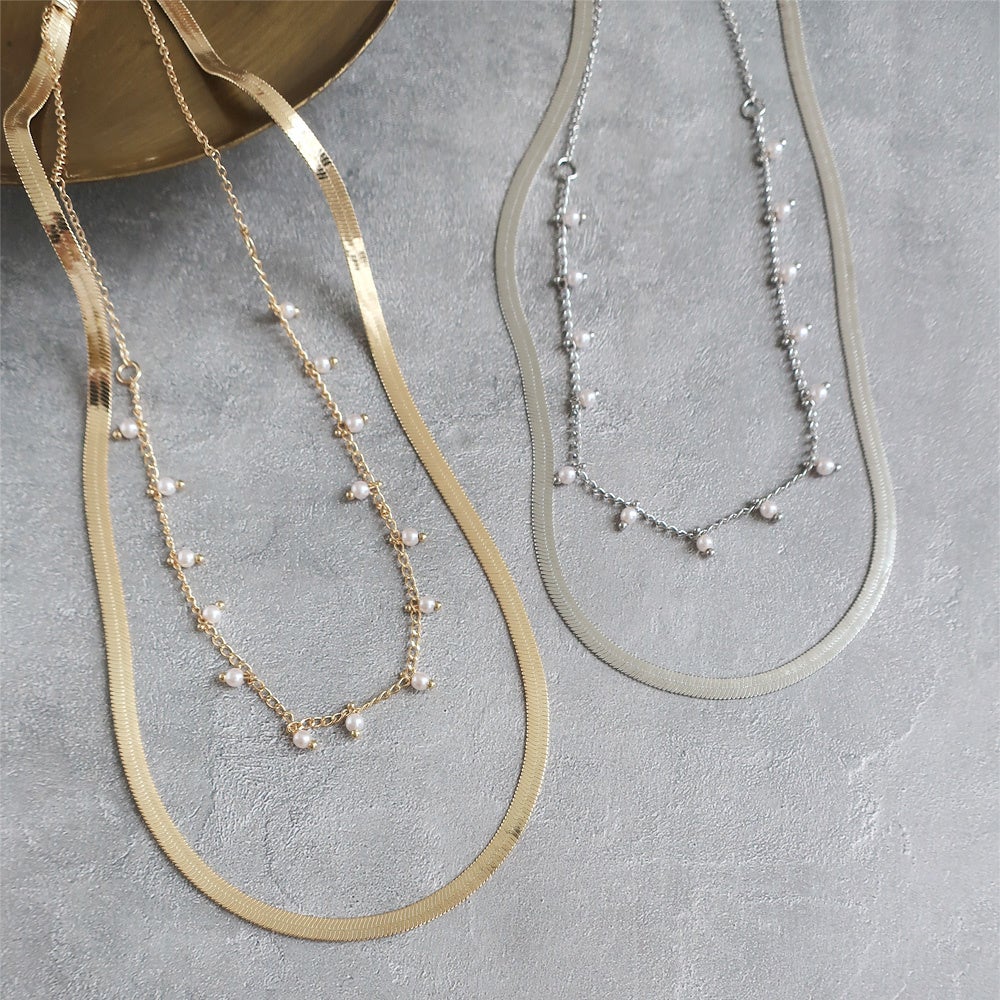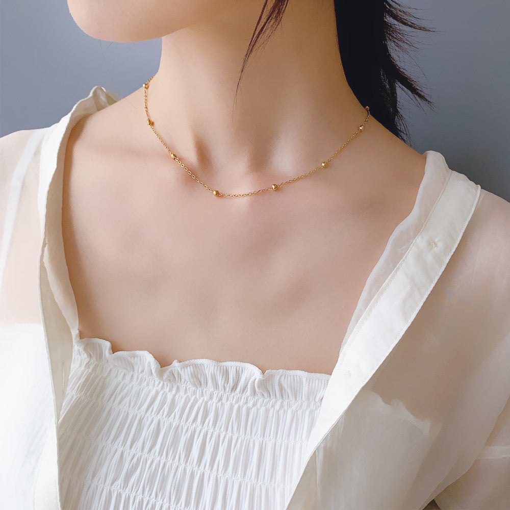 Tシャツなどに映えて、華やかなネックラインを演出するチェーンネックレス。