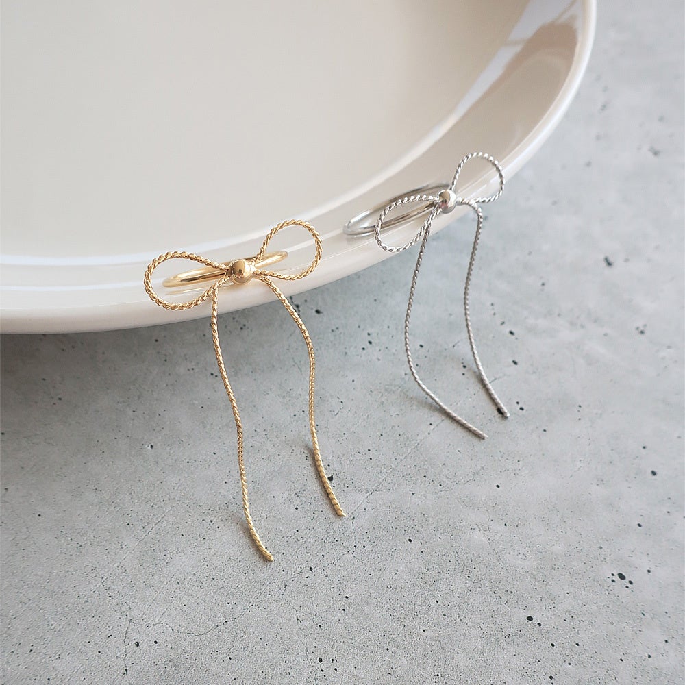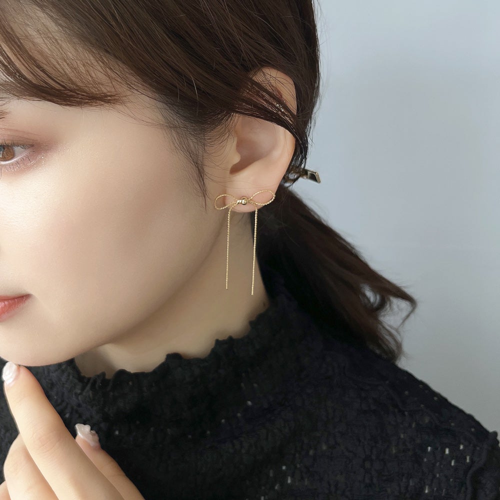 甘くなりすぎず、華奢なチェーンのリボンモチーフアクセサリー。