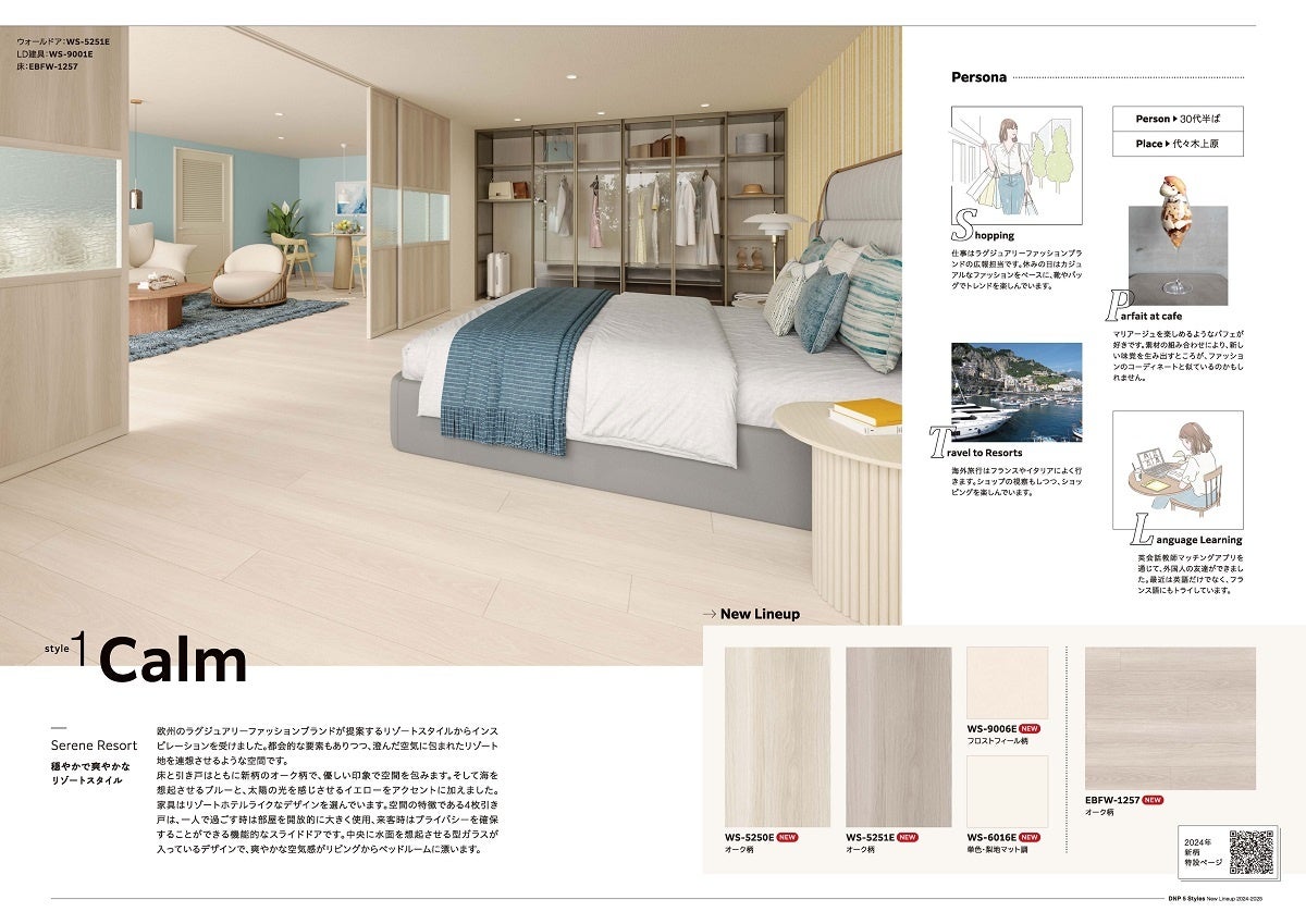 メーカーが販売する対象製品の特徴やターゲットユーザーをもとに、DNPは、その製品を購入・利用する典型的なユーザー像「ペルソナ」を設定します。「ペルソナ」のライフスタイルや好みのデザイントレンドを想定し、それに相応しいインテリア空間に適した各種製品の色・柄を提案します。DNPはメーカーが想定するターゲットユーザーが魅力的に感じるような説得力のある意匠開発のストーリーも、意匠デザインと共に提供します。