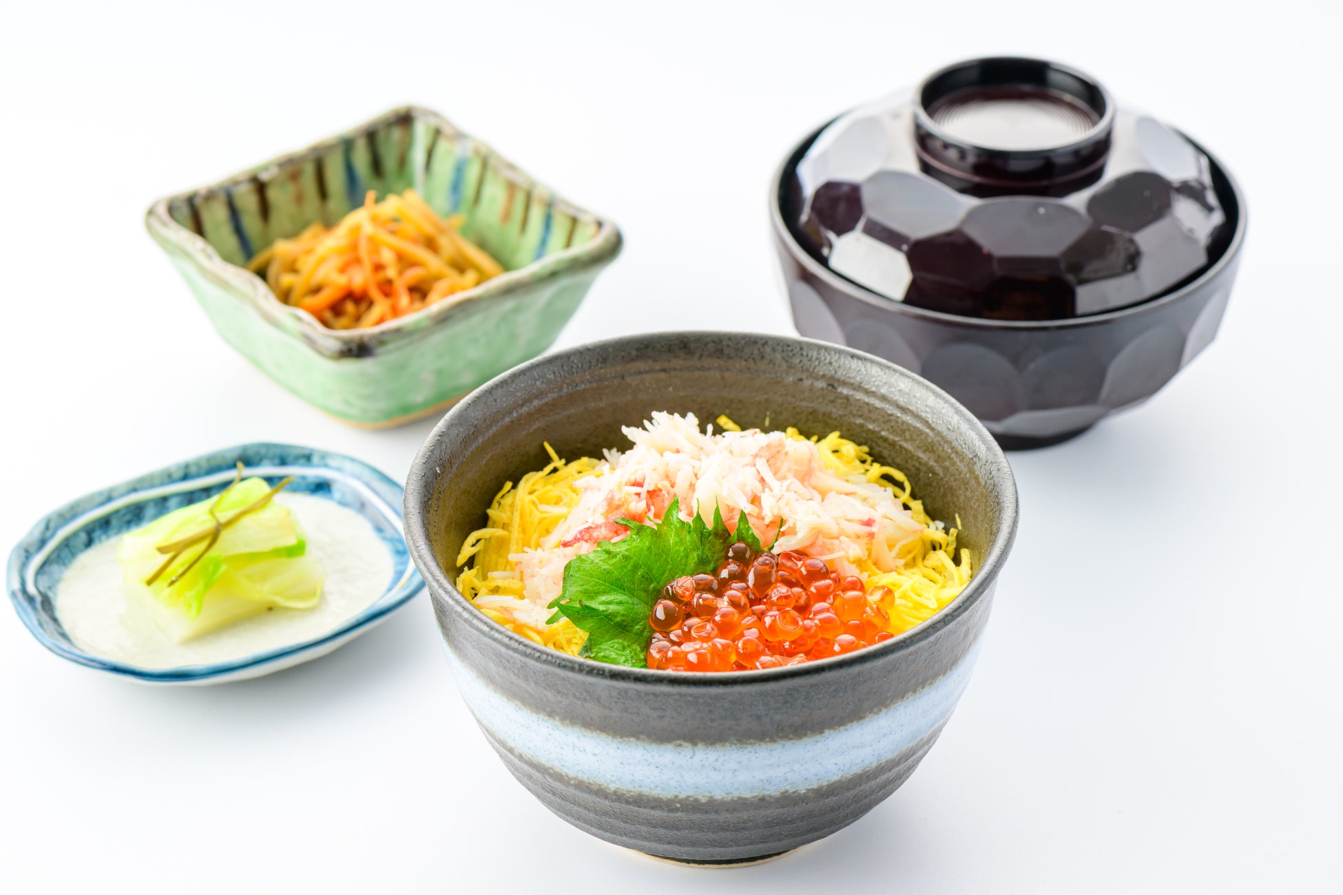 新日本海特製のズワイ蟹といくらの贅沢な豪華丼をご賞味ください。