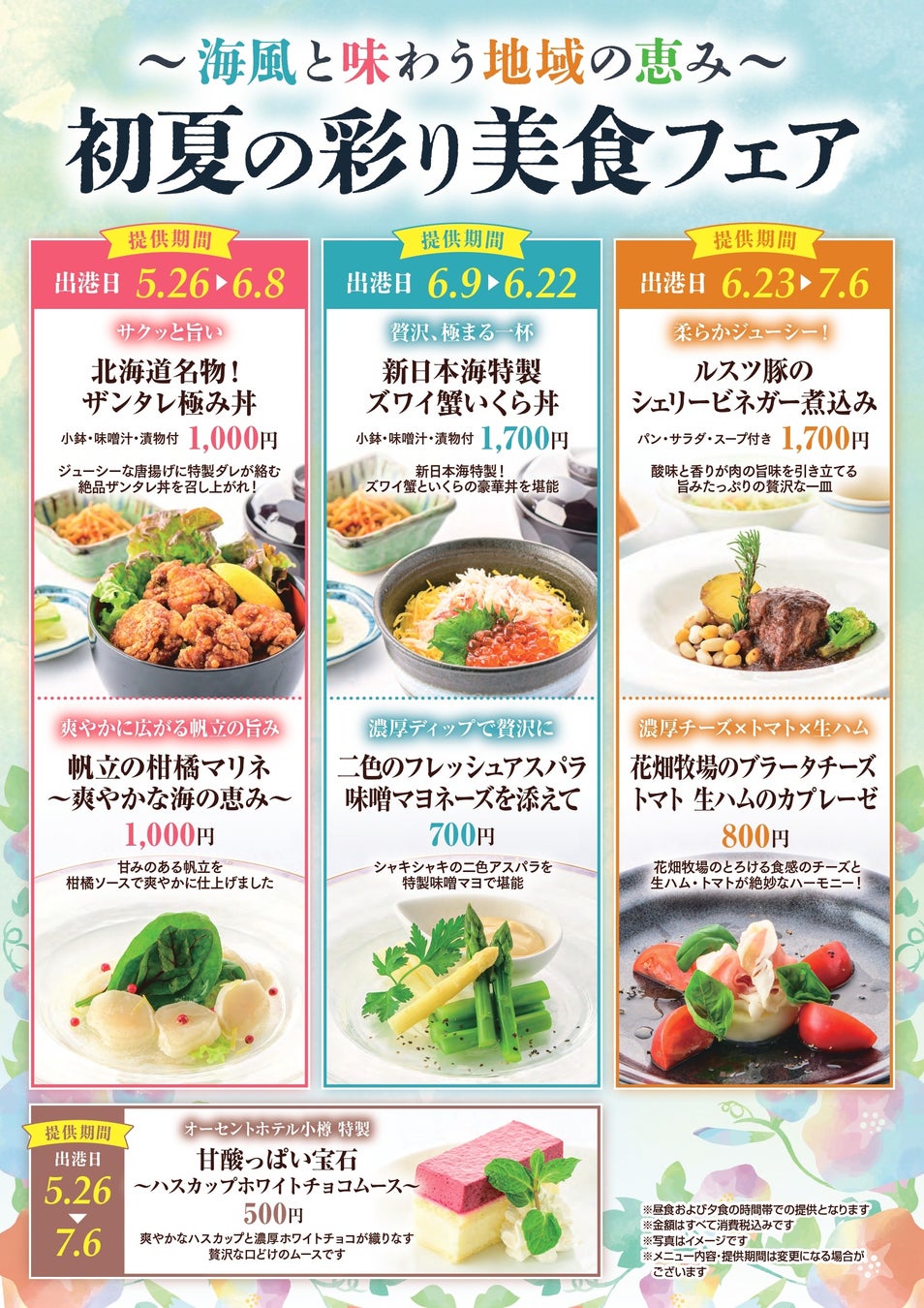 【新日本海フェリー】船内レストラン「~海風と味わう地域の恵み~初夏の彩り美食フェア」 5/26スタート!