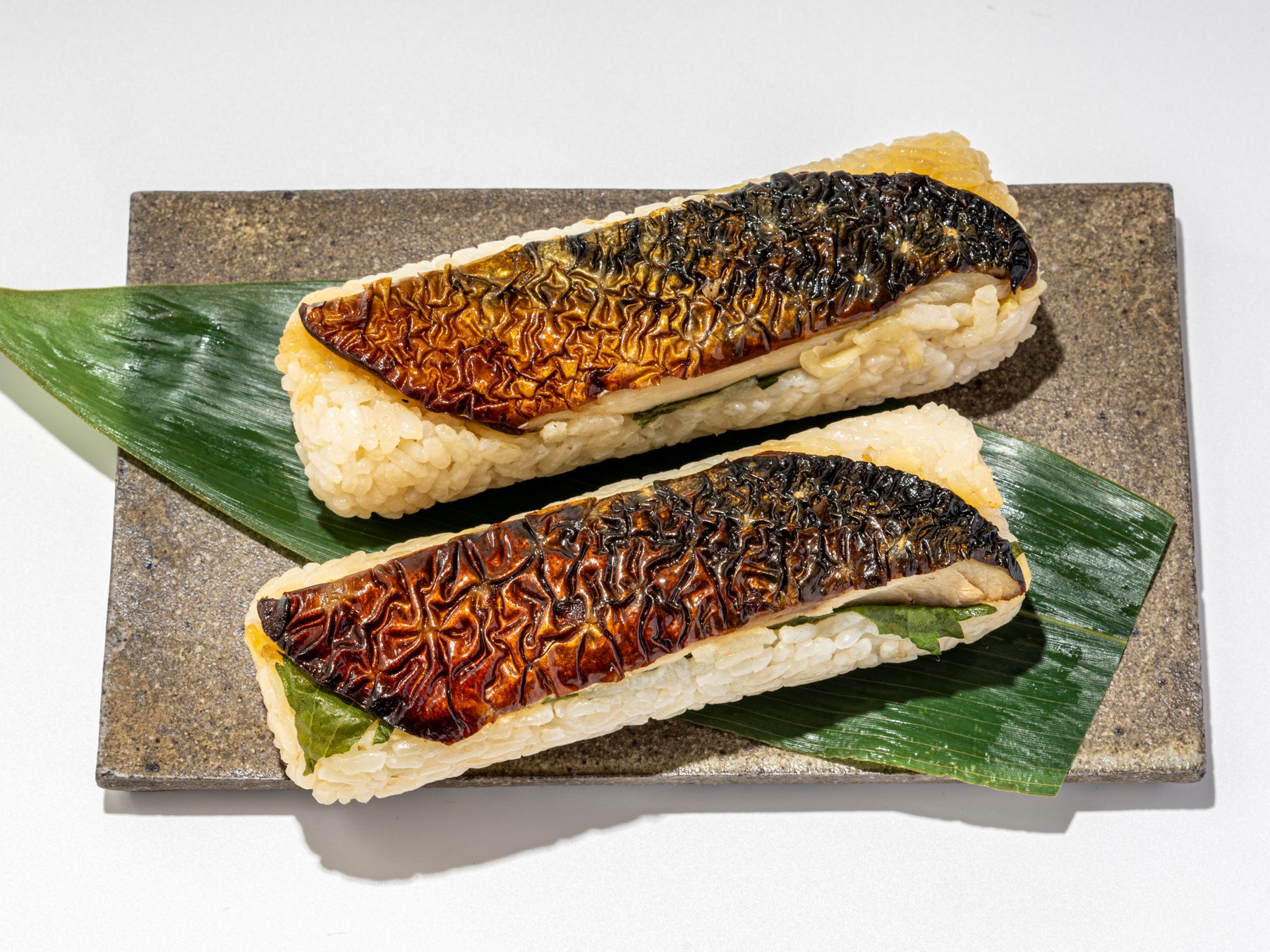 ワンハンドでおにぎり感覚で食べられる焼き鯖寿司。従来の焼き鯖寿司のイメージを覆した商品です。特製のだしシャリと醤油のかおる焼き鯖の相性が抜群。刻み生姜のシャキシャキとした食感も楽しめます。片手で手軽にお楽しみいただけます。 ※販売時間:15:00~