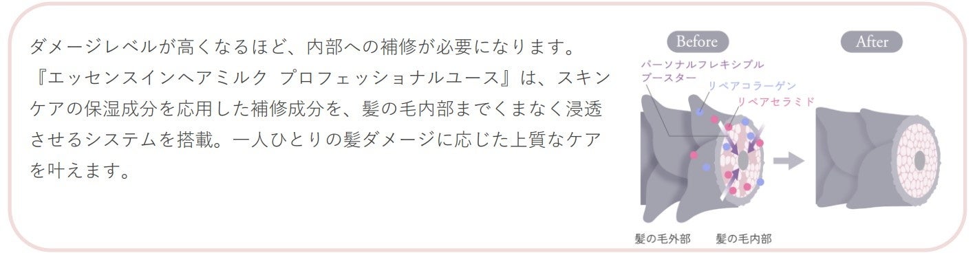 市場シェア№1※1ヘアケア『エッセンスインヘアミルク』より、一人ひとりの髪ダメージに応じた上質なケアを届けるヘアサロン専売品が新登場『エッセンスインヘアミルク プロフェッショナルユース』