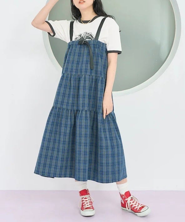 メンズライクなチェックとティアードの女性らしい雰囲気のギャップが可愛いアイテム。
