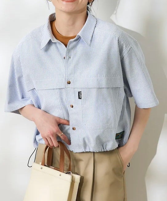 アウトドアの要素が入ったデザインとトレンドシルエットをバランスよく合わせた半袖フィッシングシャツ