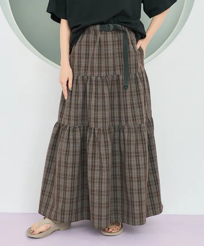 ITEM04 別注 2WAY ベルト付き ティアードチェックスカート \11,000(tax in)