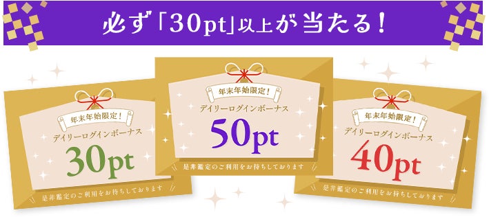 キャンペーン期間中は、デイリーログインボーナスポイントが増量されます。必ず30pt以上が当たります。