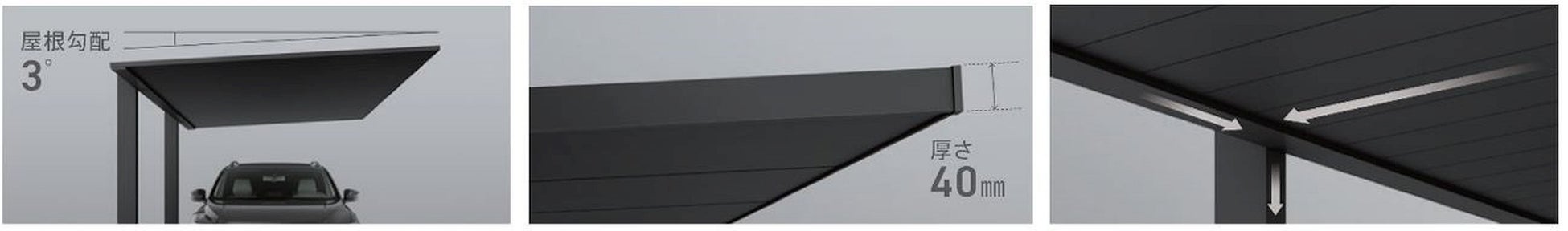 「プレーンルーフ」は、余計な要素を削ぎ落として“シンプル”を追求したデザインに加え、多様化する住まいやライフスタイルに合せて選択できる豊富なカラーを計11種類設定。建物になじむ水平・垂直を基調としたシルエット、スリムな屋根形状、ノイズレスなディテールで、近年の凹凸の少ないフラットなデザインで様々な外壁色の住宅にも違和感なく溶け込み、暮らしを彩ります。枯葉詰まりを抑制する「枯葉除けネット」、雨天時にスムーズな排水をサポートする「柱下排水部品」を標準装備するなど、住まい手の使い勝手にも配慮しました。