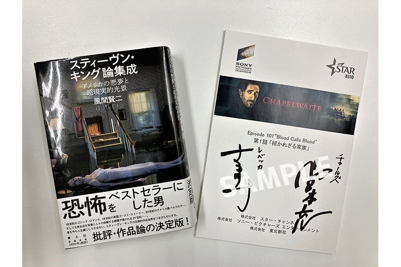 また、ホラー好きの方々を迎え、本作の魅力をより深くお伝えする番組「ホラー好き大注目!海外ドラマ『チャペルウェイト 呪われた系譜』徹底ガイド」(全4回)も本日より全話配信開始。出演者んのこがけん(お笑い芸人)、風間賢二(翻訳家)、丸屋九兵衛(万物評論家)、伊藤さとり(映画パーソナリティ)、森瀬 繚(ライター、翻訳家)を迎え、スティーヴン・キングやクトゥルフ神話の話等を交えながら本作の魅力がさらに伝わる事間違い無し!合わせてお楽しみください。さらに、本作の全話配信を記念して豪華プレゼントキャンペーンを実施!吹替版の声優 宮本充さん、佐古真弓さんサイン入り第1話台本、特番出演者の風間賢二さんサイン入り書籍「スティーヴン・キング論集成」をそれぞれ3名様にプレゼント!