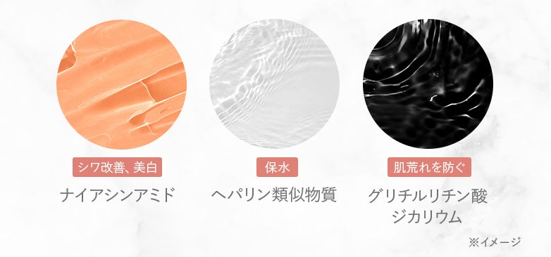 1.「3種の有効成分」により【シワ・シミ*1・乾燥・肌荒れ】を全方位ケア