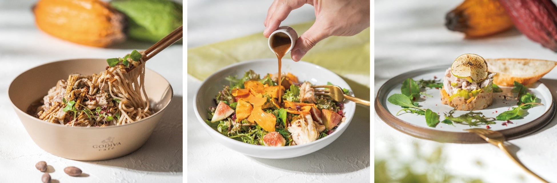 取扱店:GODIVA café 東京店・飯田橋店・みなとみらい店・日本橋店・大宮店・二子玉川店・越谷イオンレイクタウンmori店「鯖と4種茸のほうじ茶蕎麦~カカオ黒七味添え」