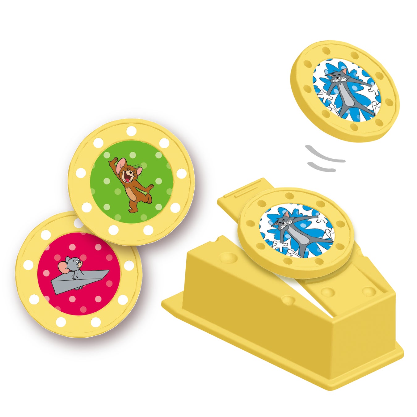 ジェリーの大好物であるチーズを模したシューターをつまんでコインを発射して遊ぶ「チーズコインシューター」、トムとジェリーの様々な表情が愛らしく、ドミノとしても積み重ねても楽しめる「バタバタドミノ」、指で弾いてトムとジェリーが描かれているコインを飛ばす「チーズジャンピングコイン」、仲の良い雰囲気のトムとジェリーが描かれたケースとトムとジェリーの仲間たちが描かれたフレークシールが一緒になった「ケース&フレークシール」の全4種です。(アイテムの種類はお選びいただけません。)
