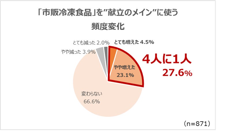 「冷凍食品=手抜き」はもう古い!? おいしい冷凍食品を賢く使う時代到来! / 冷凍食品を「献立のメイン」に使う頻度が以前に比べて「増えた」と4人に1人が回答