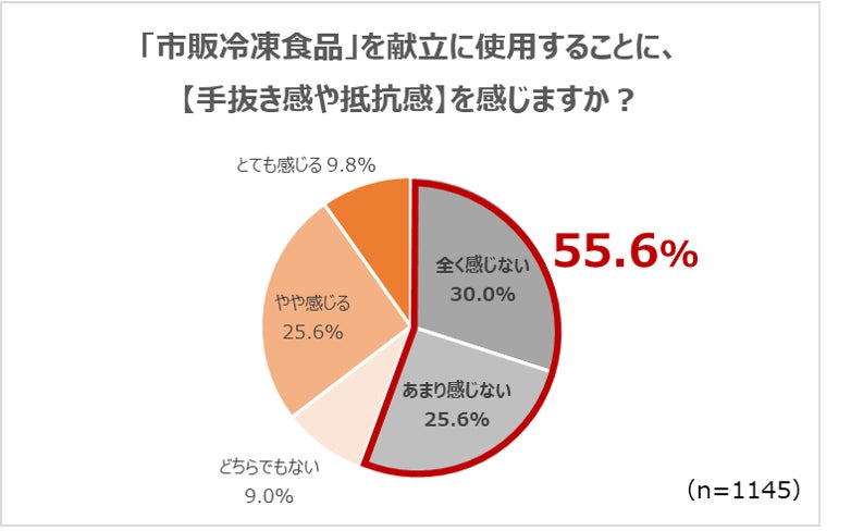 冷凍食品を献立に使用することに、半数以上が手抜き感や抵抗感がないと回答